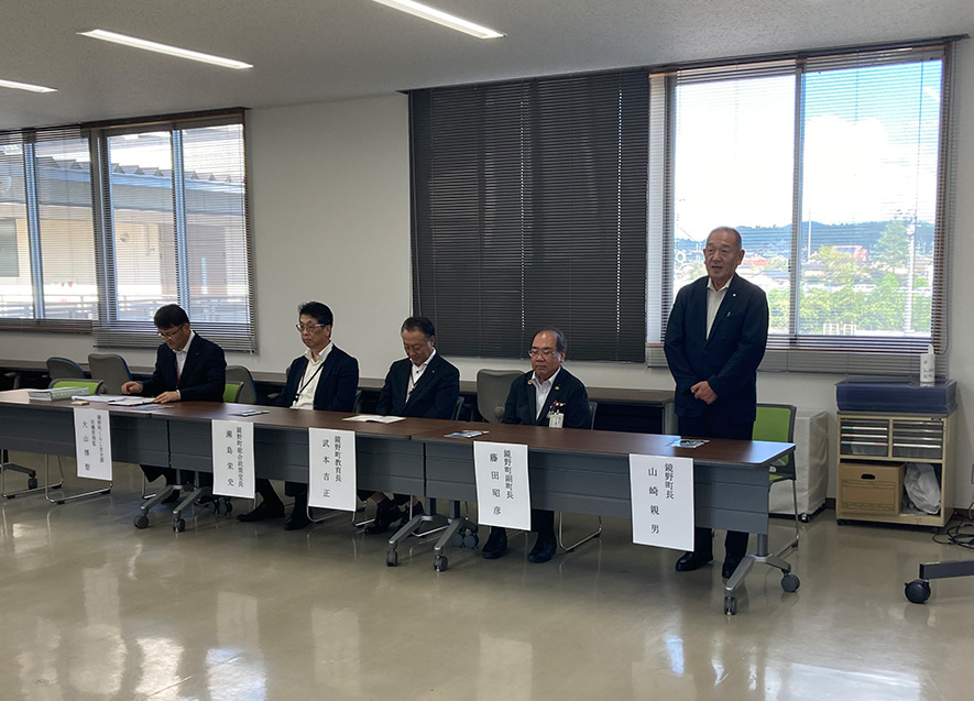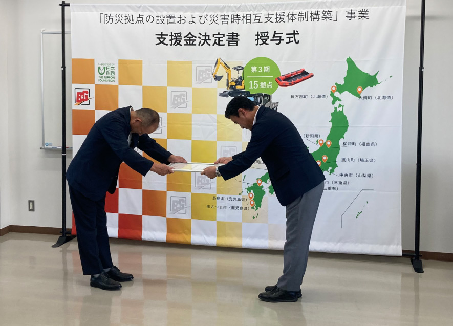 山崎町長は「本事業では、地域防災力を高める資機材整備や職員の人材育成ができることから、支援金をしっかり活用し、地域防災力を高めるとともに被災自治体などの支援につなげていきたい」と述べた。