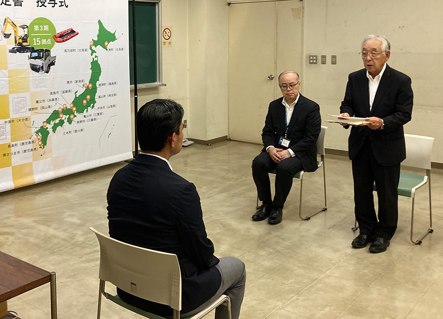 香川県三木町で「防災拠点の設置および災害時相互支援体制構築」事業の決定書授与式を行った。