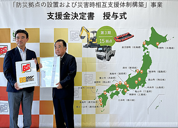 鹿児島県南さつま市で「防災拠点の設置および災害時相互支援体制構築」事業の決定書授与式を行った。