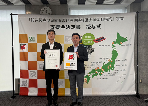 新潟県燕市で「防災拠点の設置および災害時相互支援体制構築」事業の決定書授与式を行った。