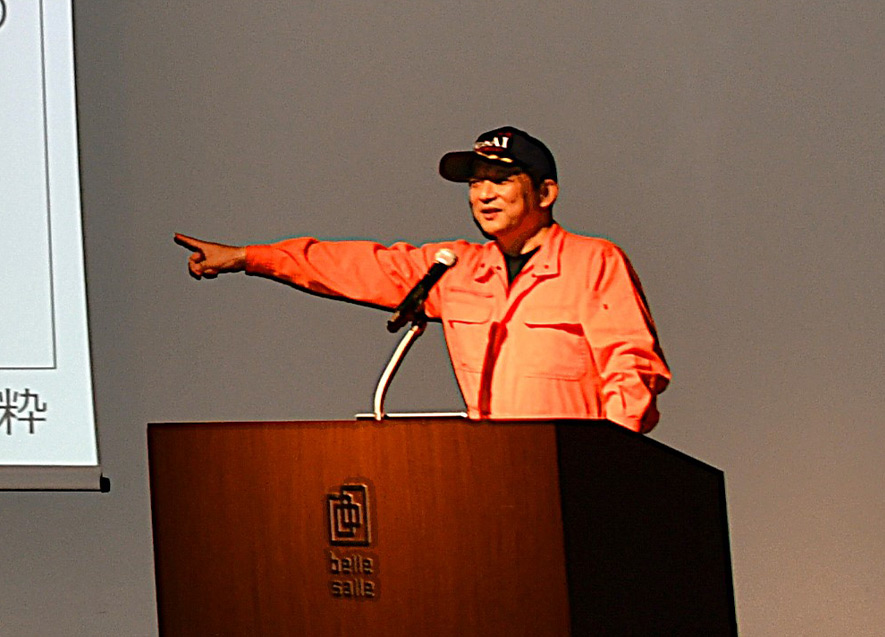 全国69ヵ所の防災拠点に重機やスライドダンプ、救助艇をはじめ様々な防災備品を日本財団の支援を受けて配備している。「発災時に協力し合って、いち早く被災地のために活動することがこの事業の大きな目的である」と説明。