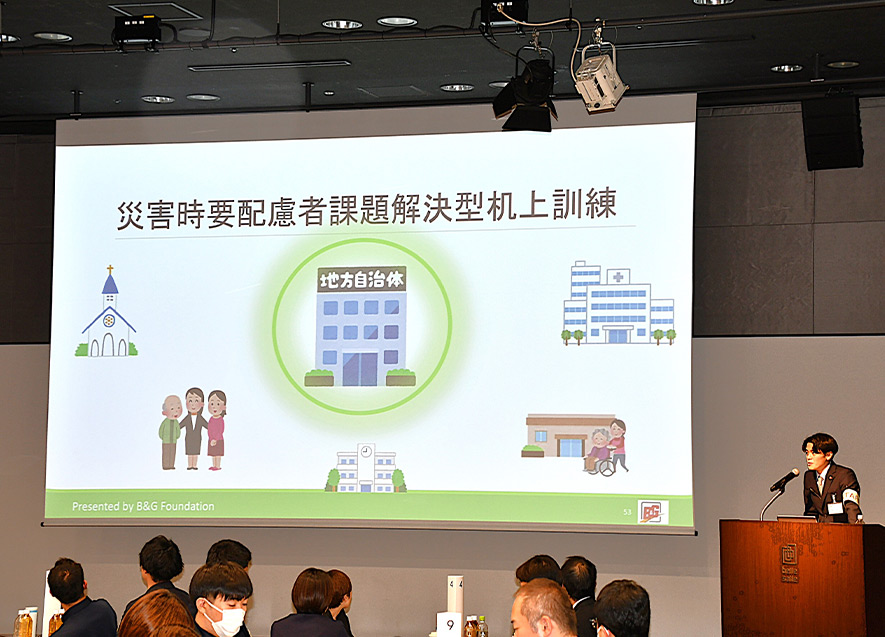 災害時要配慮者への課題解決においては行政単独ではなく、地域の連携が必要不可欠である。そのため地域連携の重要性を理解するワークショップをB&G財団が実施。