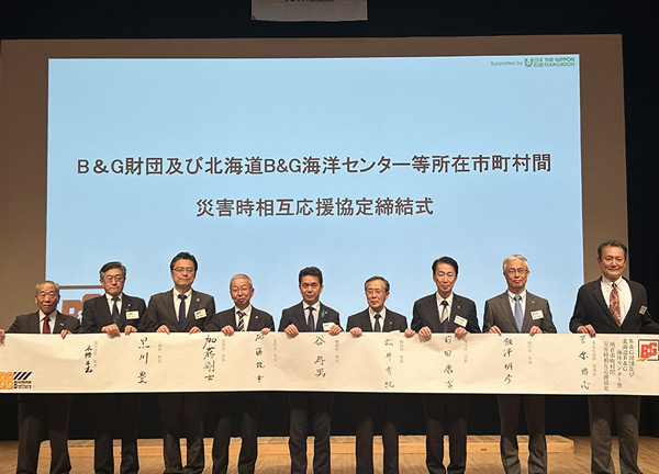 これは「防災拠点の設置および災害時相互支援体制構築事業(以下、防災拠点事業)」の一環として、B&G財団及び北海道内の海洋センター所在33市町村との間で災害時相互応援協定を締結することで、災害時相互支援体制を一層強化することを目的としている。