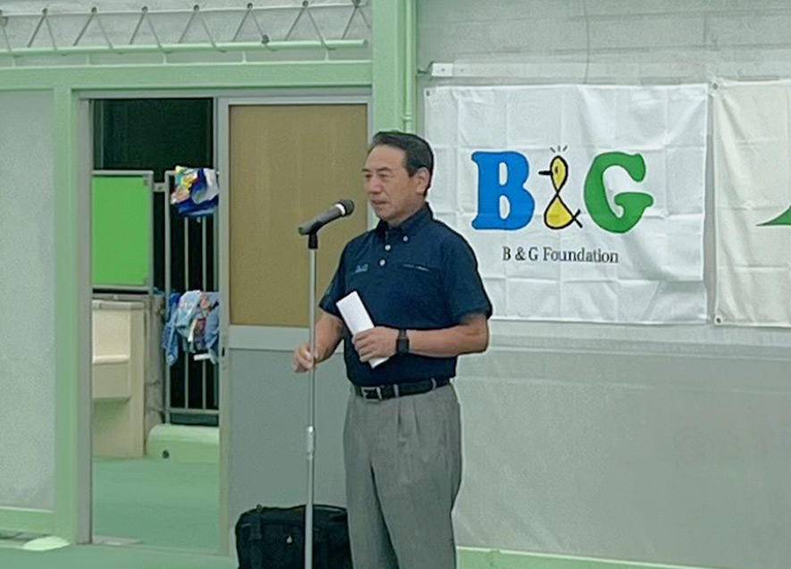 南部町名川B&G海洋センター(青森県)で、熱中症対策事業「救護室配備式」が7月4日に行われ、南部町 工藤祐直町長、髙橋力也教育長、B&G財団常務理事岩井正人をはじめ、地元の小学生、関係者など約50人が出席した。