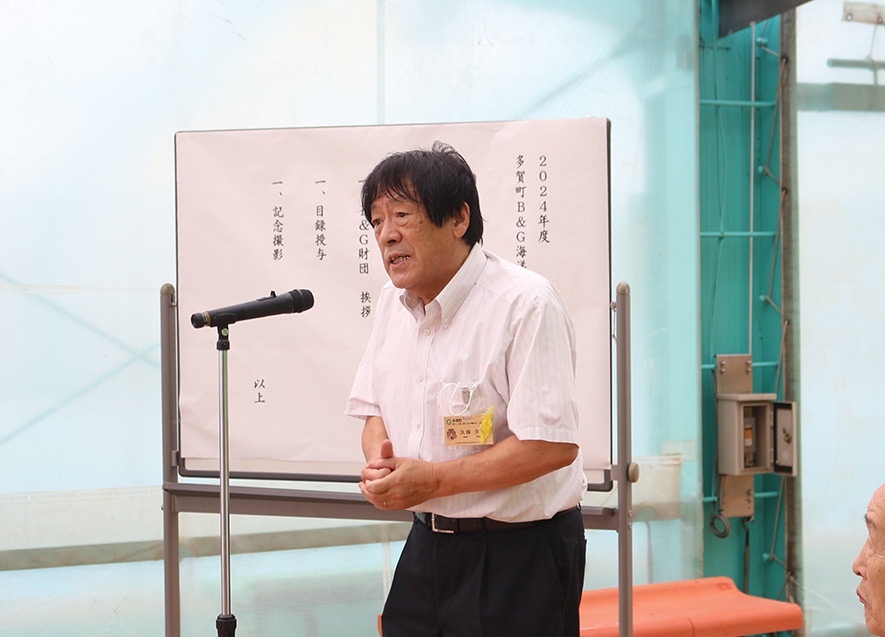 多賀町B&G海洋センター(滋賀県)で、熱中症対策事業「救護室配備式」が7月24日に行われ、多賀町 久保久良町長、山中健一教育長、B&G財団常務理事岩井正人をはじめ、地元小学生、関係者など約20人が出席した。