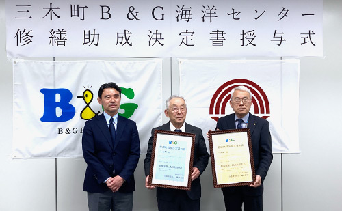 香川県三木町で、2024年度「地域海洋センター修繕助成」決定書授与式が行われました。
