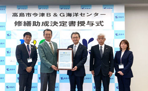 滋賀県高島市で、2024年度「地域海洋センター修繕助成」決定書授与式が行われました。