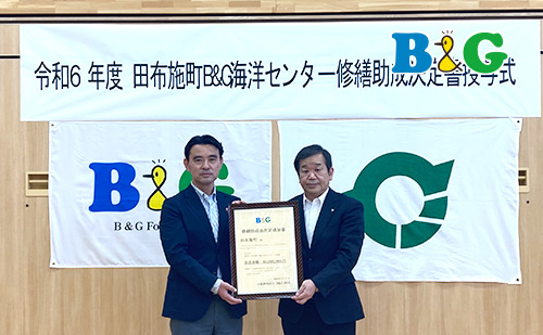 山口県田布施町で、2024年度「地域海洋センター修繕助成」決定書授与式が行われました。