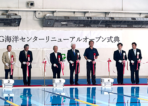 朝倉市甘木B&G海洋センター(福岡県)で温水プールのリニューアルオープン式典が行われた。