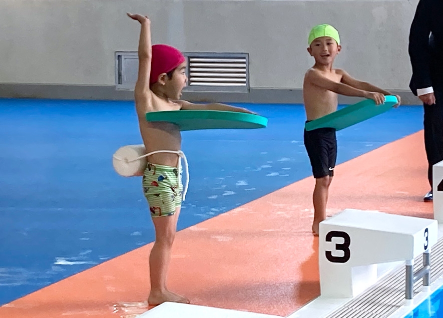 式典後は、オープニングセレモニーとして、海洋センターを利用する幼児から高齢者による「泳ぎ初め」が行われ、それぞれが元気よく泳ぎを披露した。