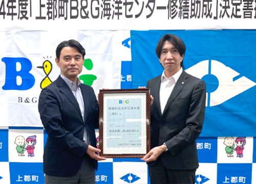兵庫県上郡町で、2024年度「地域海洋センター修繕助成」決定書授与式が行われた。