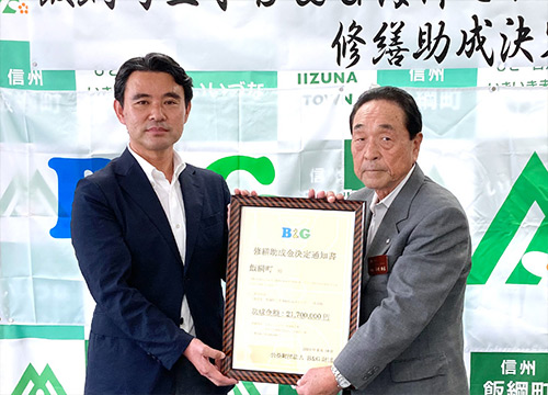 長野県飯綱町で、2024年度「地域海洋センター修繕助成」決定書授与式が行われた。