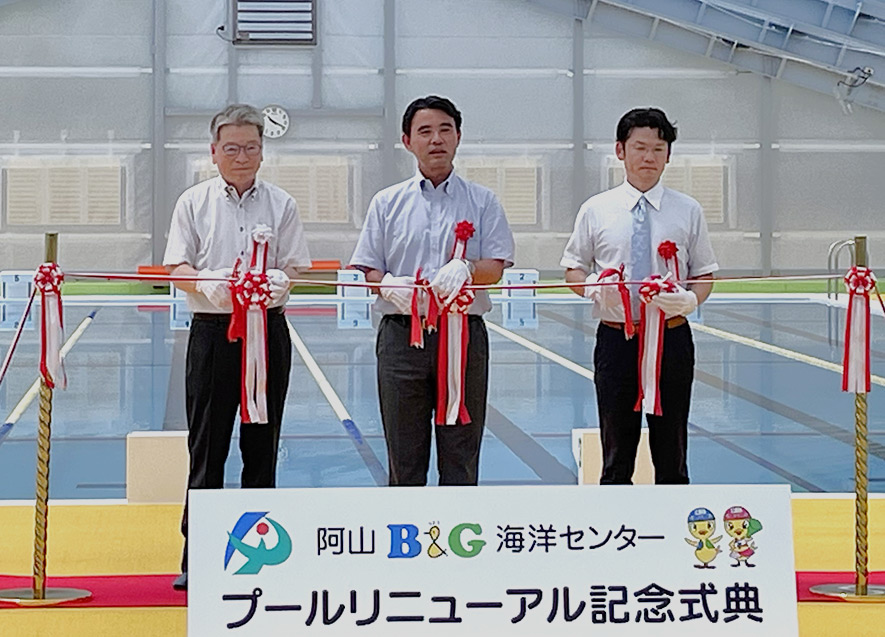 伊賀市阿山B&G海洋センター(三重県)でプールのリニューアルオープン式典が行われた。