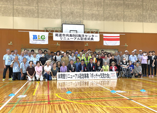 尾道市向島B&G海洋センター(広島県)で体育館のリニューアルオープン式典が行われた。
