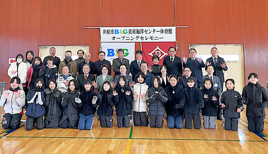 井原市美星B&G海洋センター(岡山県)にて体育館のリニューアルオープン式典が行われた。
