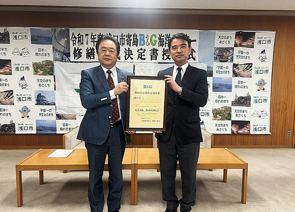 岡山県浅口市で、2025年度「地域海洋センター修繕助成」決定書授与式を実施した。