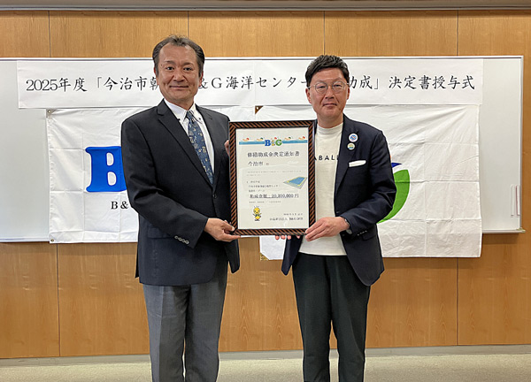 愛媛県今治市で、2025年度「地域海洋センター修繕助成」決定書授与式を実施した。