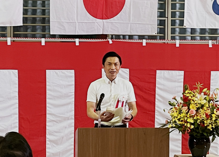 高田町長は、プールサイドや更衣室床の改修、濾過ポンプの更新、トイレの洋式化などを実施し、安全・快適に利用できる施設となった。また、救護室の設置についても支援いただき、熱中症対策や休憩場所としての機能が充実した。今後も、より多くの町民に愛され親しまれる施設となるよう努めていくと述べた。