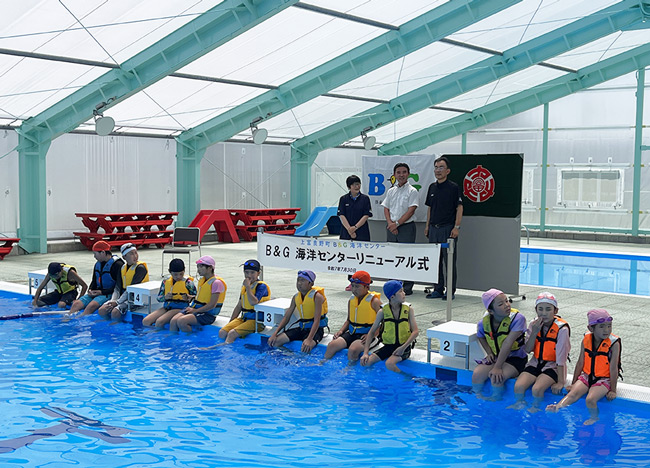 「海洋センター修繕助成制度」事業を活用し施設の改修を終えた上富良野町B&G海洋センタープールにて、リニューアル式典及び記念イベントが行われた。