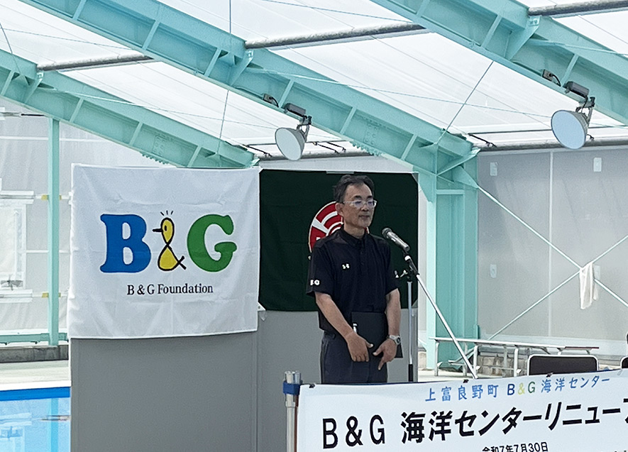 斉藤町長は、町には海や大きな川はないが、このプールを通じて水に親しんでもらいたい。同時に、着衣泳や安全教室を通じて、水の怖さや正しい知識も身につけてほしい。今後もこのプールを活用し、水泳やSUPなどを楽しみながら、子どもたちだけでなく町民みんなで利用していきたいと述べた。