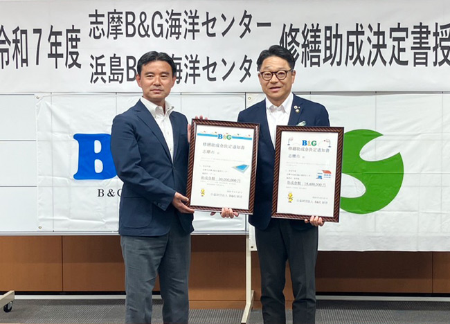 各地のB&G海洋センターを対象に施設修繕や機能向上に必要な経費の助成を行っており、2025年度は24道県38市町の44施設に対し、総額8億1,040万円の修繕助成金の交付を決定。助成金額が1,000万円を超える29自治体について決定書授与式を行う。
