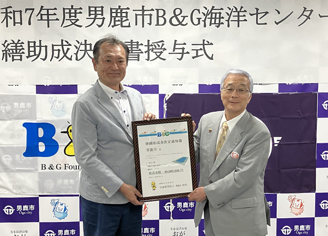 各地のB&G海洋センターを対象に施設修繕や機能向上に必要な経費の助成を行っており、2025年度は24道県38市町の44施設に対し、総額8億1,040万円の修繕助成金の交付を決定。助成金額が1,000万円を超える29自治体について決定書授与式を行う。