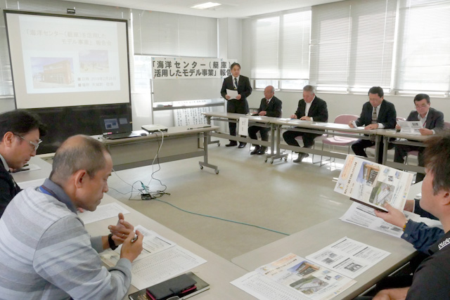 海洋センターを活用したモデル事業の成功事例として注目されている、鹿児島県徳之島の天城町B&G海洋センターの艇庫リニューアルオープンからまもなく一年を迎えますが、この一年の取り組みや成果などを紹介した事業報告会が2月26日、天城町役場で行われ、同町の森田弘光町長以下関連行政担当者やB&G財団の菅原悟志理事長らが出席。艇庫の利用者が改修前の8倍近くまで拡大し、地域の活性化にも貢献したモデル事業の成功を喜びました。さらに、今後は、スポーツ施設の枠を超え、多様な機能を持つ地域の交流拠点に転換していく計画です。