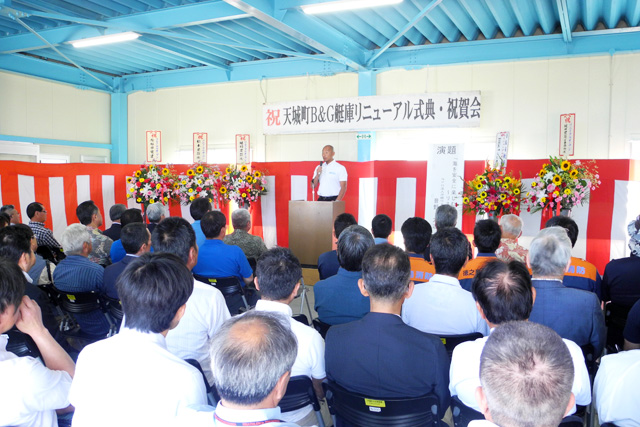 天城町海洋センターの艇庫は、海洋センターを活用したモデル事業の対象事例として、2017年度事業で改修を決定。総事業費約6500万円のうち3000万円をB&G財団からの助成金として加え、施設の大規模な改修を行って、翌18年4月にリニューアルオープンしました。