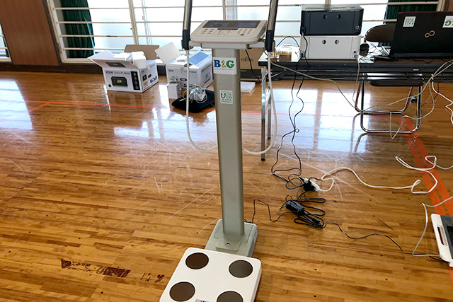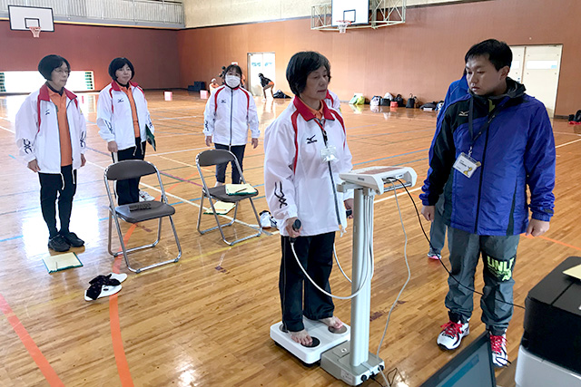 地域住民の皆さんに向け、B&G財団との連携事業で新たに購入した「体組成計」「運動機能分析装置」を活用して、体脂肪率や筋肉量の測定会を実施。体力テストも同時に行って体力や筋力を把握していただき、定期的な運動習慣に繋げようという試みで、反響は上々です。