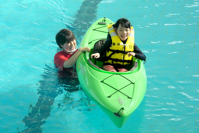 プールではカヌー・SUP体験試乗会を行い、子ども達が大はしゃぎでカヌーに乗る姿が印象的でした。