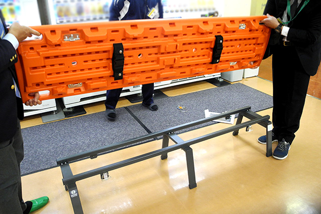 また、今回購入した移動式ベンチは、緊急時には座面が取り外して担架にもなり、万一の時に役立ちます。