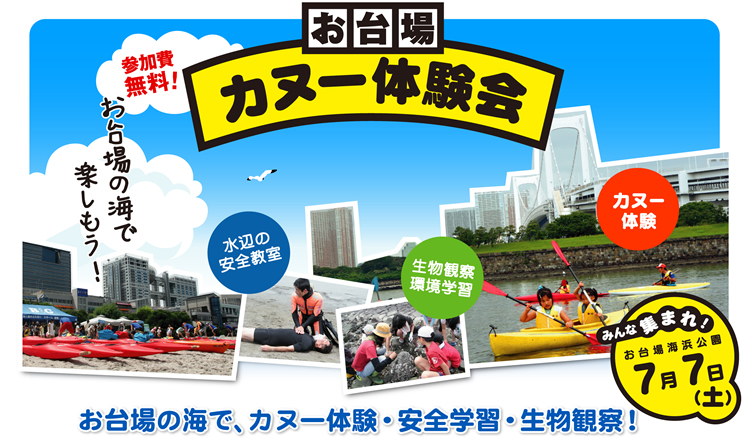 水辺は楽しさがいっぱい! お台場カヌー体験会を7月7日(土)に開催します。
