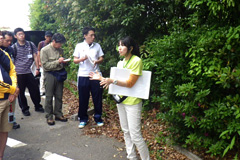 「2006年に、宮脇先生の教えで植樹した苗木がここまで大きくなっています」。しんわルネッサンスを囲む様々な樹木の紹介、植物への接し方を教えていただきました。
