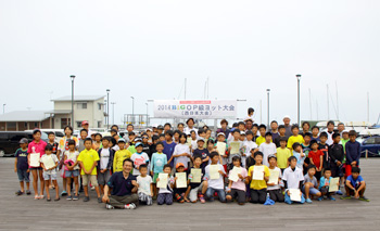 「優勝は狙っていました。今年の全日本選手権に出場できるよう、次にあるOP協会のレースにはAクラスでエントリーしたいです」と、Bクラスで優勝したB&G福岡ジュニア海洋クラブの若林陽太郎くんは意欲を語りました(左から5番目)
