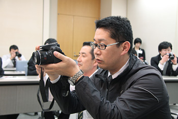 写真撮影と記事作成に関しては、ともに実技研修を実施。元皇室カメラマンの山下 勲 氏による研修では、参加者各自がマニュアル操作でシャッタースピードやホワイトバランスを調整しながら撮影の技術を体験的に学びました。