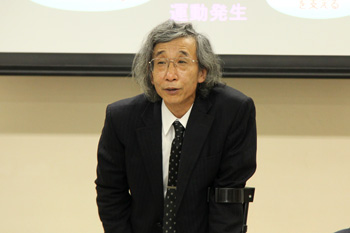 最初に、「子供の運動オンチ克服法」というテーマでご講義いただいた徳島大学 荒木 秀夫 教授は、「知性は身のこなしを反映します」と説明し、幼児期における運動と脳の発達が、子供の運動神経にとても重要であると指摘しました。