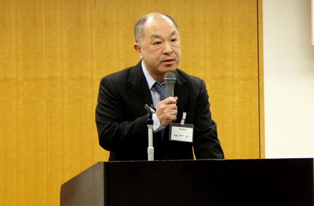 続いて、B&G財団専務理事 菅原 悟志 が、「ブロック連絡協議会の自主運営のお願いと共に、2年前から実施している『地域コミュニティー活性化事業』と新たに始まる『第3の居場所づくり』を展開しながら、今後もB&G財団と各自治体との連携を強化し、地域住民の活動の場となる海洋センターづくりへの発展に向けて、理解と協力をお願いします。」と挨拶を行いました。