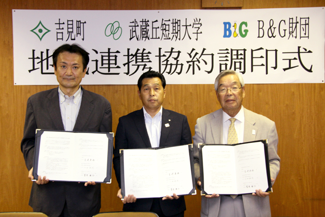 埼玉県吉見町・武蔵丘短期大学・B&G財団が、3者連携協約を締結しました