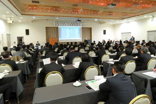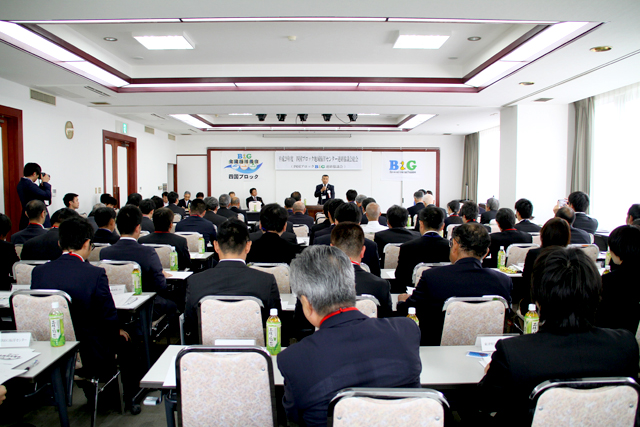 総会出席を重視した取り組みにより総数で878人の自治体関係者が参加しました。首長など自治体執行部の出席は、南九州ブロックが休会した前年度比で45人上回る201人。自治体出席率は北海道、北陸、四国、北九州の4ブロックは100%、全体でも96.7%となりました。総会にはB&G財団から梶田功会長(写真=5月11日、近畿ブロック)、管原悟志専務理事、古山透常務理事のほか関係者が各ブロックに出席して、分科会による試みも行い意見交換をしました。