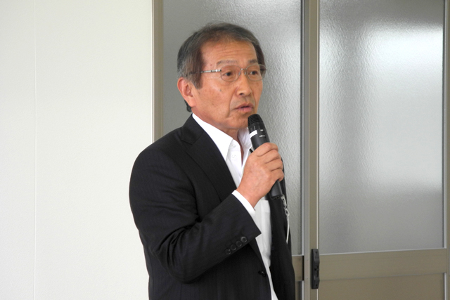 熊本地震の復興支援に対し、南阿蘇村の吉良清一村長は「震災直後から、義援金、ボランティア派遣など大変多くの方々に支援していただき、大変感謝しています。現在も140世帯が仮設住宅での暮らしを強いられているほか、交通網の復旧にもまだまだ時間がかかります。これからも復興に向け頑張っていきたい」とお礼を述べました(5月23日、南九州ブロック総会)