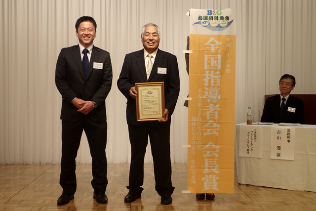 全国指導者会からは各ブロックにおいて顕著な活動を行ってきた指導者に会長賞が渡されました(4月26日、北陸ブロック総会で七尾市B&G海洋センター指導者会に対して)
