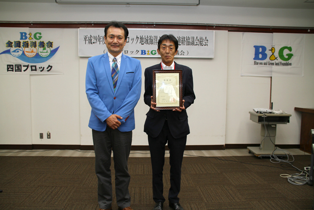各種表彰として、「海洋センター施設別利用者数ベスト10」、「全国指導者会・会長賞」、「優良海洋センター表彰」、「B&Gチャレンジ」、「クリーンフェスティバル10年連続実施センター表彰」のほか、海を守る植樹教育事業実施支援決定書の授与式が行われました。