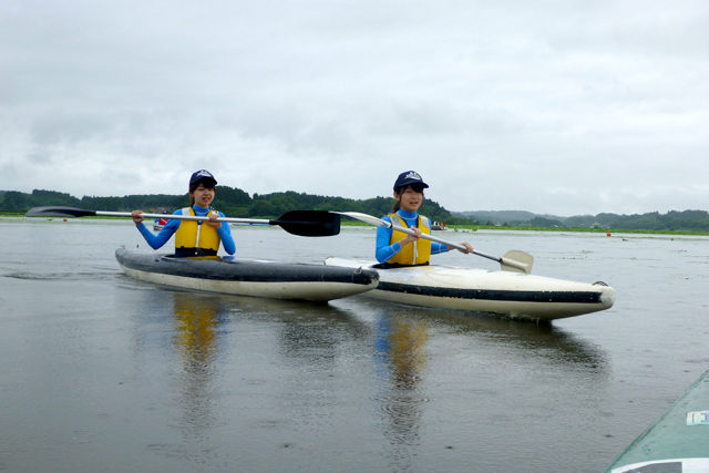 カヌーツーリングをする学生(宮城県栗原市築館B&G海洋センター)