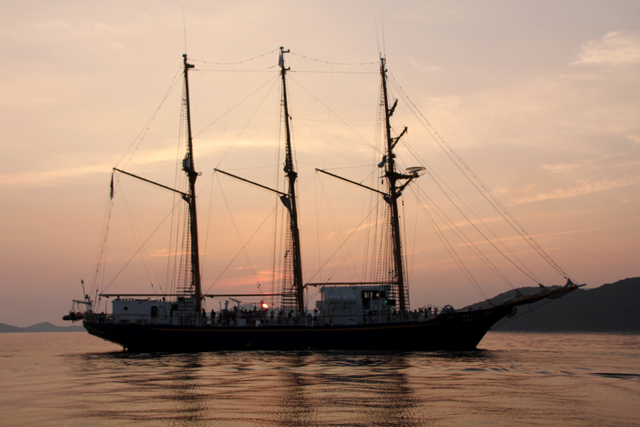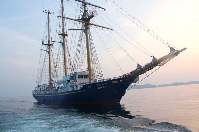 特に、バウスプリット(船首から延びる細い棒)を渡ったり、ヤシの実を使った船上運動会、また、ロープクラフトなどの珍しい企画が実施され、参加者は、船上で海の風を体に受けながら、夏休みの思い出を作りました。