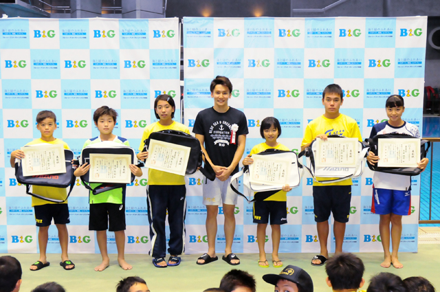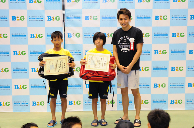 その他、大会記録を更新した選手全員と、抽選で参加選手10人に江原選手のサイン入り色紙が授与されました。