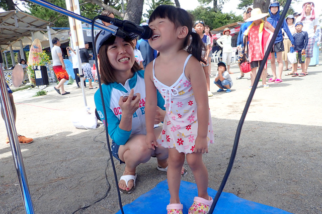 「将来の夢」「家族」「海」をテーマに大声選手権を午前・午後計2回開催。最も大きい声の参加者に1万円相当の商品、特別賞を含め4人を表彰。