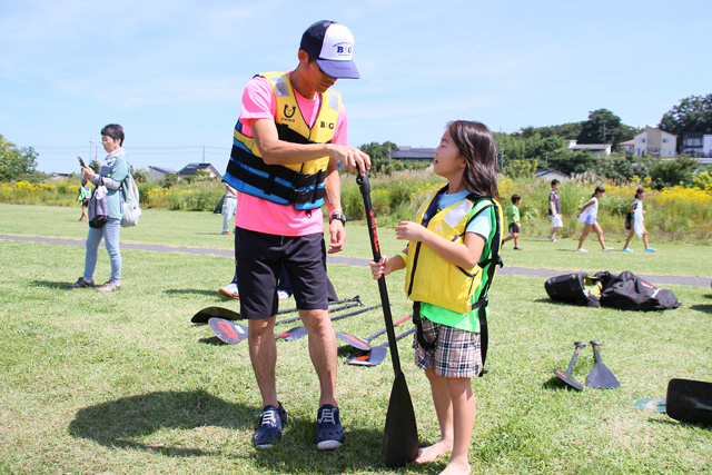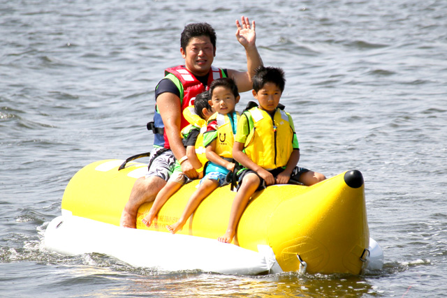 カヌーを体験した参加者(小学3年男子)は「思い通りに漕ぐことができて、楽しかった」と話していました。SUPに参加(小学5年男子)して「初めてだったけど、立って漕ぐことができて気持ちよかった」、アクアボールに参加(小学2年男子)して「ボールの中で立つのが難しかったけど、とても楽しかった」。バナナボート参加(小学2年女子)は「夏休み前からずっと楽しみにしていた。体験できてすごくうれしい」と喜んでいました。