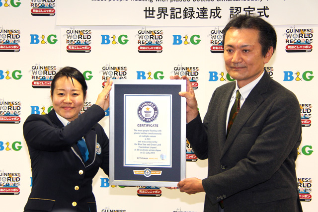 B&G財団(東京都港区・前田康吉会長)は「全国一斉ペットボトル浮き ギネス世界記録に挑戦 ~海と日本プロジェクト~」として実施しましたが、11月16日にギネス世界記録として正式に認定されました。これを受け12月14日午後2時から財団会議室で、ギネス世界記録認定式が行われました。ギネス世界記録に大きく貢献した成功人数賞、ベスト会場賞、ベストUKIガール賞の表彰も行われました。