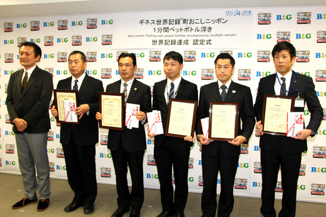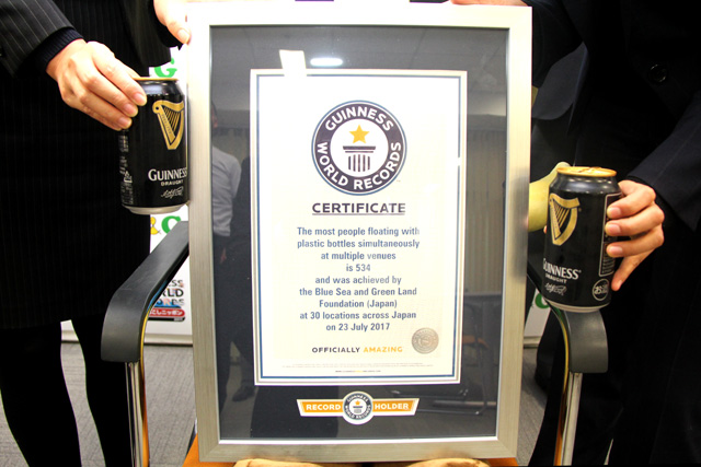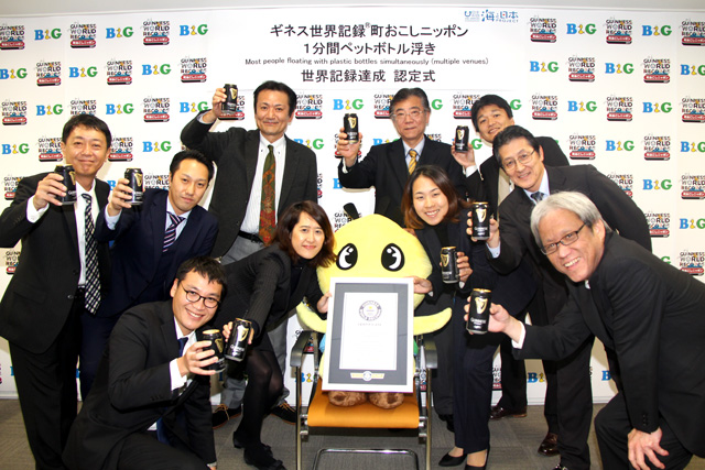 この様子をビデオで撮影し、ギネスワールドレコーズジャパンに提出。534人が成功と公式認定員に認められ、世界初となる「ペットボトルで水に浮く人数が世界最多」というギネス世界記録となりました。