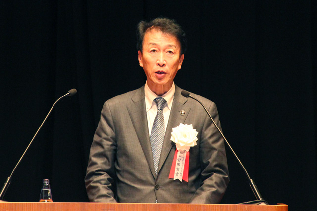 全国市長会議の会長に選出された兵庫県芦屋市の山中健市長による挨拶